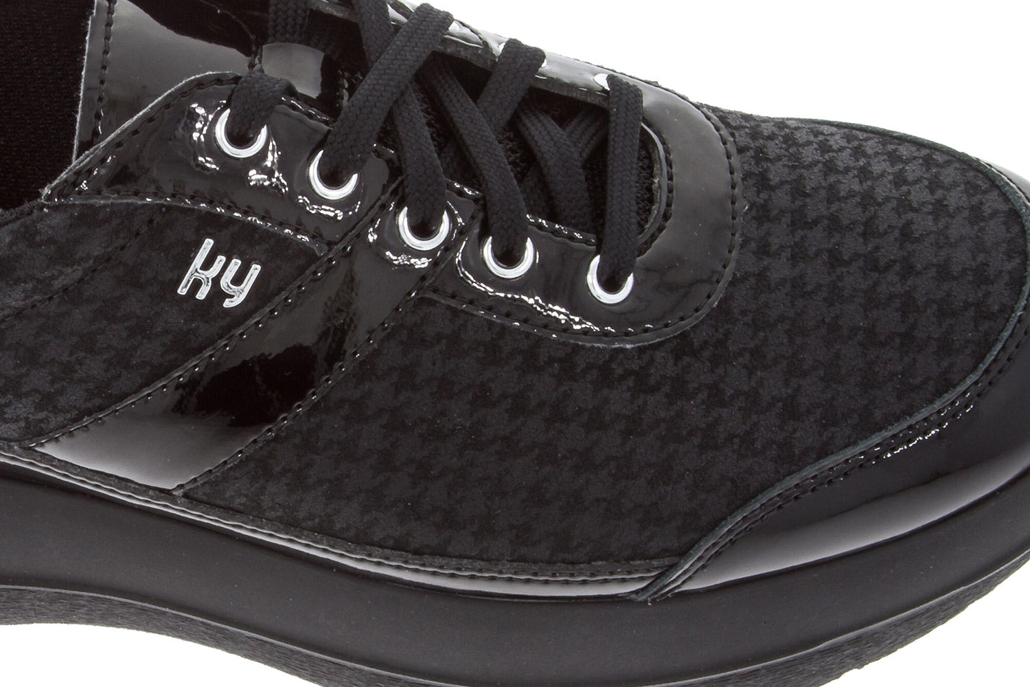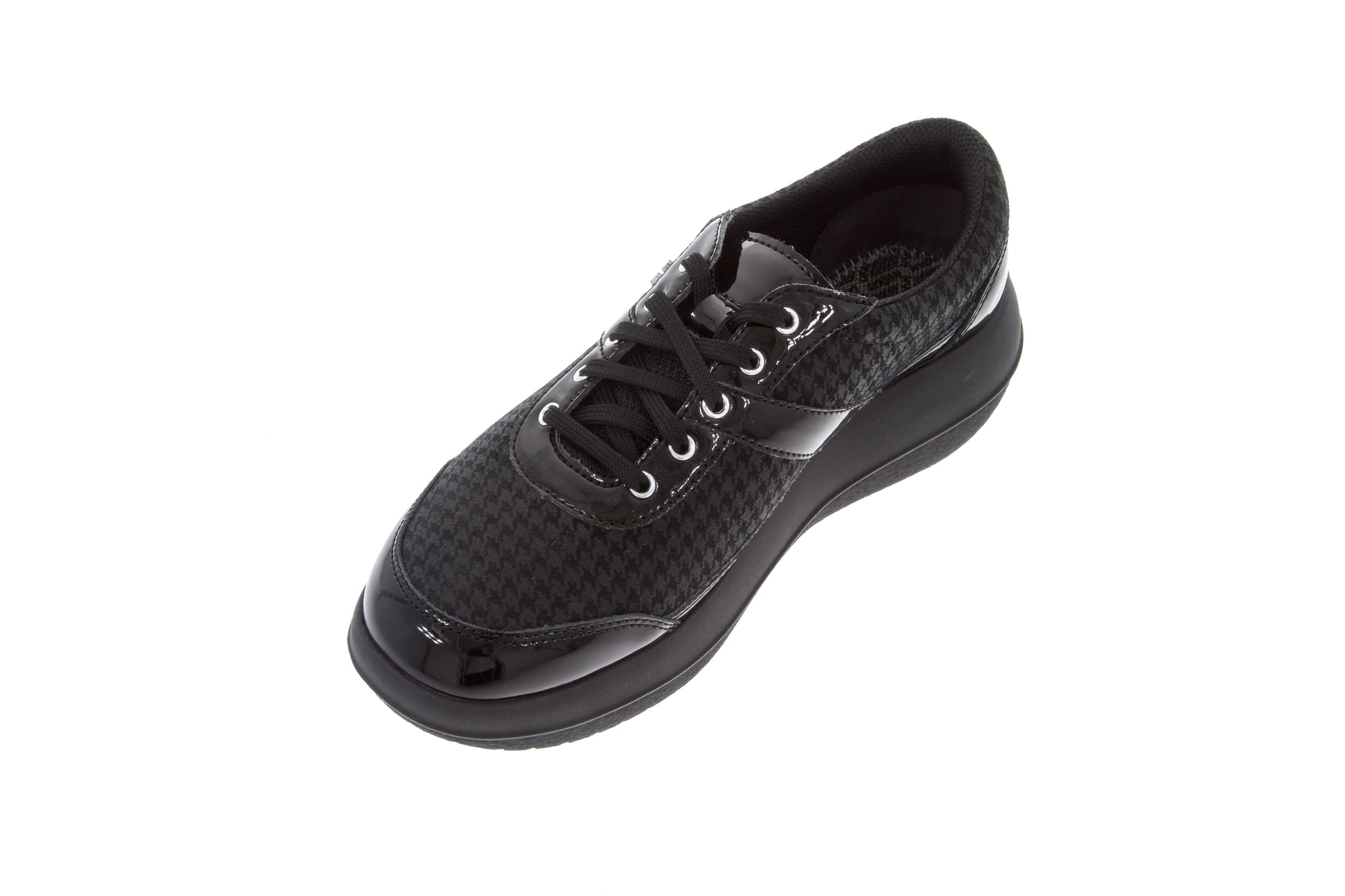 The Aubonne Black Poule has a Strato sole and therefore a higher Rebound-Effect. The Strato sole is designed to roll better in the backfoot area than previous kybun soles. This type of sole offers maximum effect as well as the ultimate in training performance and absorption. The foot pressure is evenly distributed and the full strength of the body is optimised. The elastic and springy material compensates for poor postures and misalignments and the full-length sole profile with larger contact area to the ground ensures optimal grip on any surface.