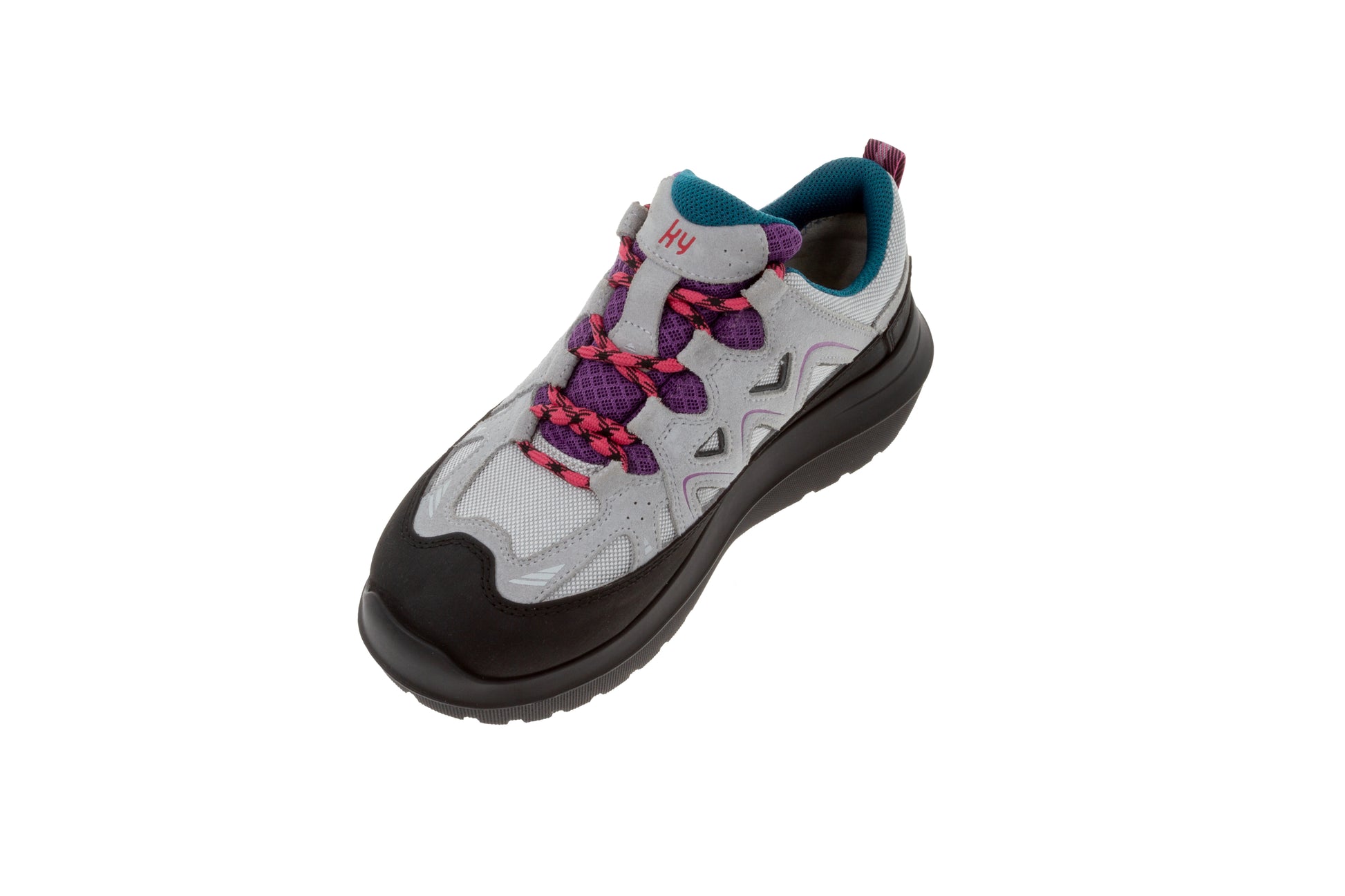 The Brig Grey delights with a finely tuned play of colours of grey elegance on the upper shoe and the pink accents of the laces. This trekking model for the hiking enthusiast lady is water-repellent and the rubber coating with seams protects you specifically against dirt in the boot. Brin Grey also has a removable PU sole and comes on the Strato Outdoor sole. The improved shape of the sole gives it a far more pleasant feeling when walking and greatly improves roll-through in the shoe.