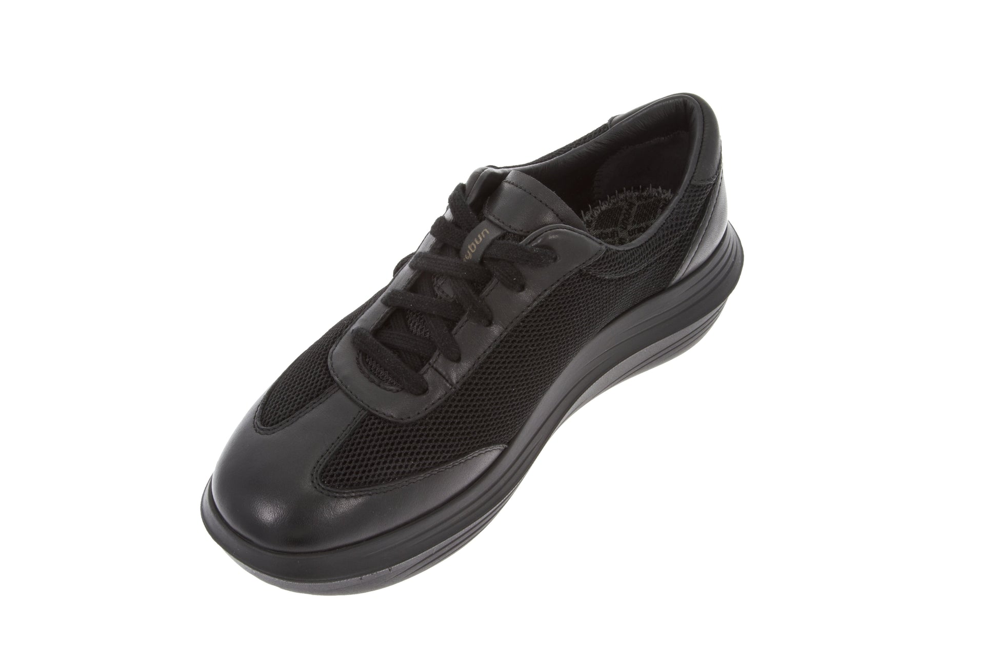 The Gandria Black has a Stratus sole and therefore a higher Rebound-Effect. The Stratus sole is the kybun standard sole since 2016. This type of sole offers maximum effect as well as the ultimate in training performance and absorption. The foot pressure is evenly distributed and the power supply is optimised. The elastic and springy material compensates for poor postures and misalignments and the full-length sole profile with larger contact area to the ground ensures optimal grip on any surface.