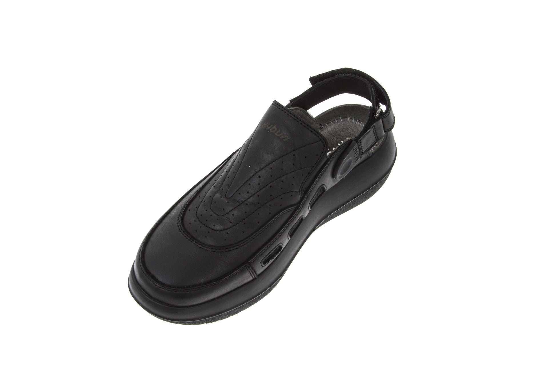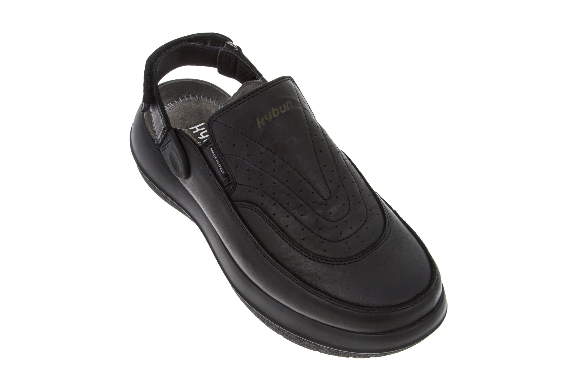The Gaya has been one of kybun's most popular slip-ons for some years. Whether worn at home, at work or at leisure, this backless ladies' shoe suits every occasion. The heel strap can be adjusted to any length or removed entirely. The instep height can now also be adjusted individually to fit any foot using a Velcro fastener, making the Gaya 20 Black even more comfortable to wear. This successor model of Gaya Black is released on the Strato sole.