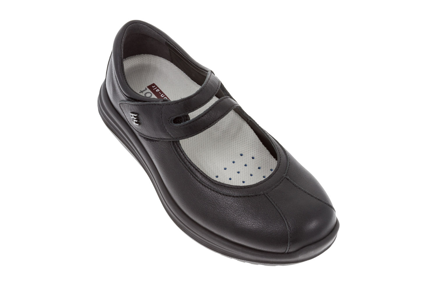 The Jona Black has a Cirrus sole and therefore a lower Rebound-Effect. This sole has an improved profile for squeaky floors and a «kybun light» feeling with less initial reactions. Therefore this type of sole offers a slightly reduced intensity and effect. That is exactly why the sole is ideal for people with weaknesses in the muscular system or balance disorders. Furthermore, it has an ideal fit for almost every foot. Also for all exercise fanatics, who don't want to miss the kybun shoes during sports activities. Perfect for sports such as tennis, volleyball, jogging, etc., where it is less about the winning and more about pain-free movement. The sole has no air cylinder but nevertheless the optimal kybun grip on all floors.