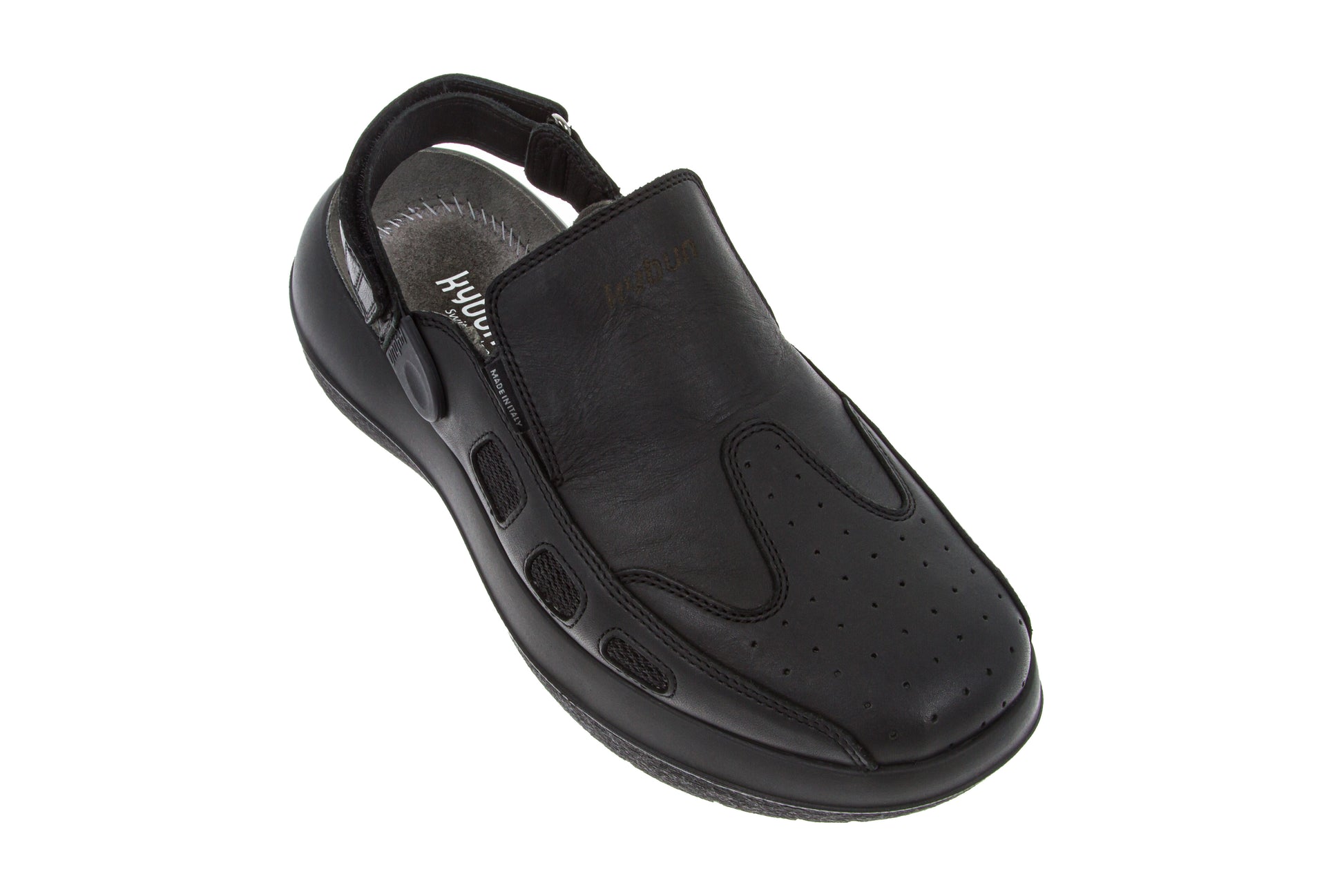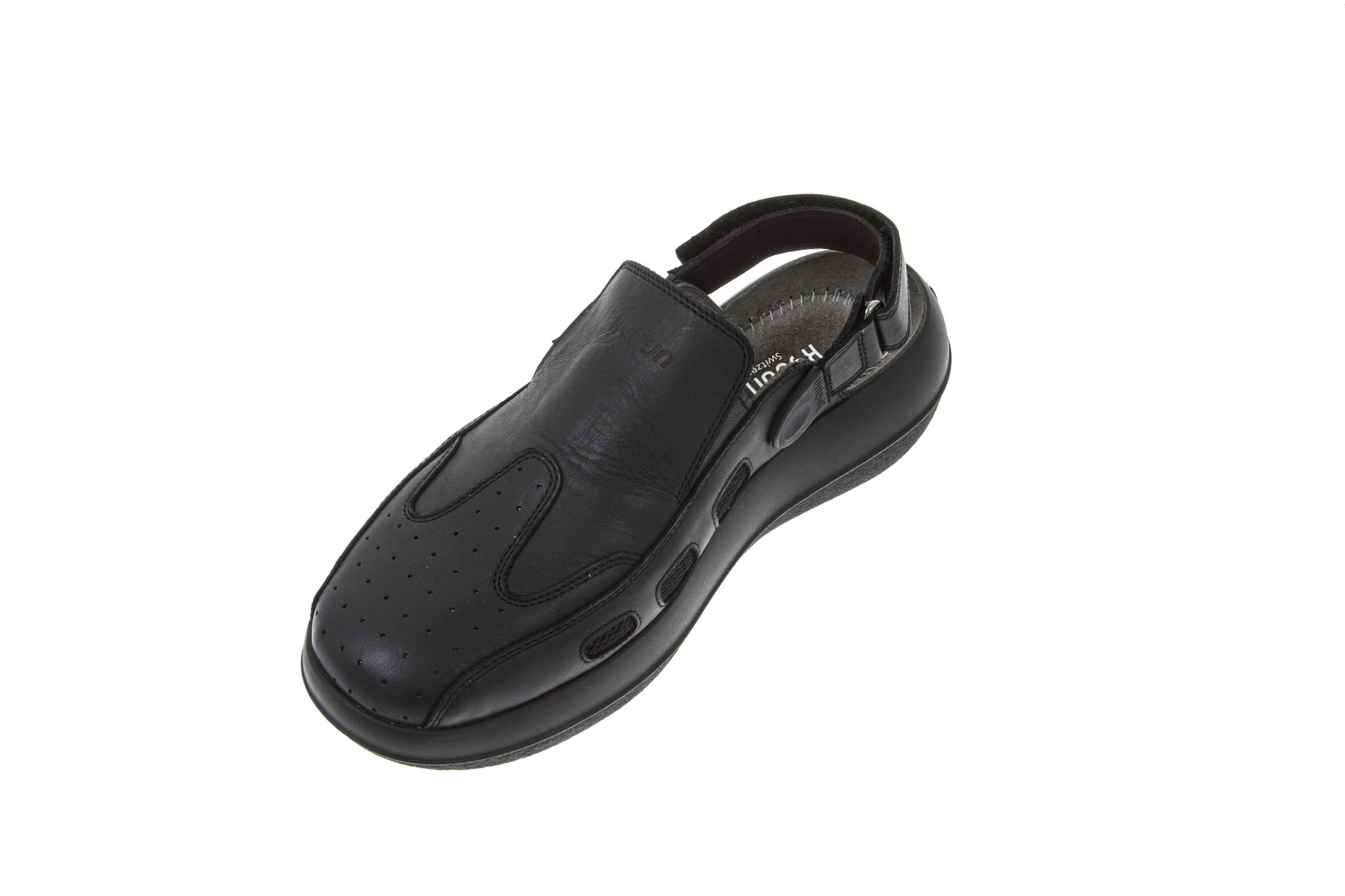 The Koryo has been one of kybun's most popular slip-ons for some years. Whether worn at home, at work or at leisure, this backless ladies' shoe suits every occasion. The heel strap can be adjusted to any length or removed entirely. The instep height can now also be adjusted individually to fit any foot using a Velcro fastener, making the Koryo 20 Black even more comfortable to wear. This successor model of Koryo Black is released on the Strato sole.