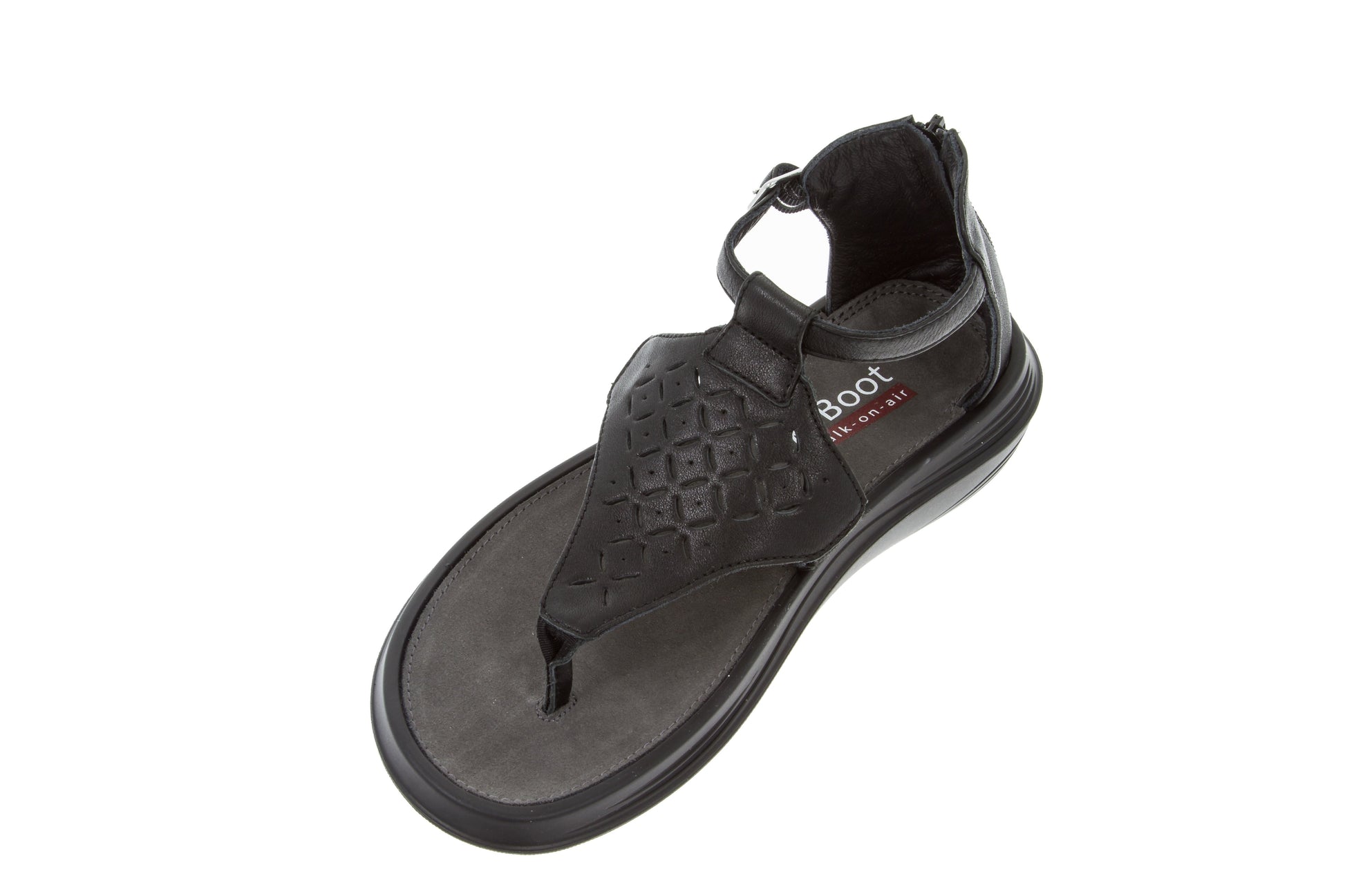 The Melide Black has a Sandal sole and therefore a higher Rebound-Effect. The Sandal sole has no air cylinders because the upper shoe material is open. This type of sole offers maximum effect as well as the ultimate in training performance and absorption. The foot pressure is evenly distributed and the power supply is optimised. The elastic and springy material compensates for poor postures and misalignments and the full-length sole profile with larger contact area to the ground ensures optimal grip on any surface.