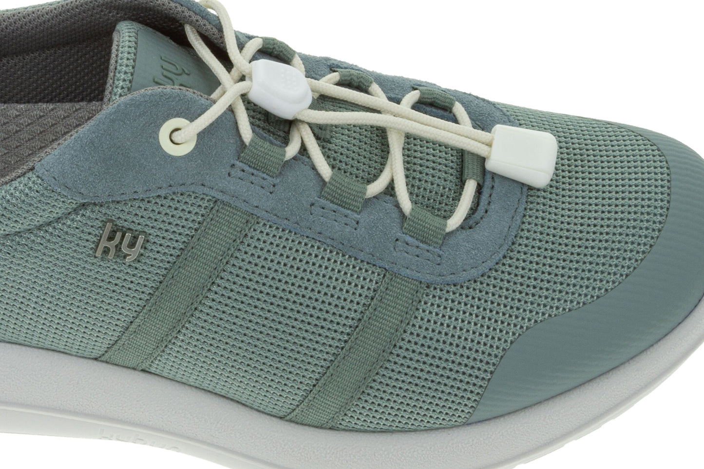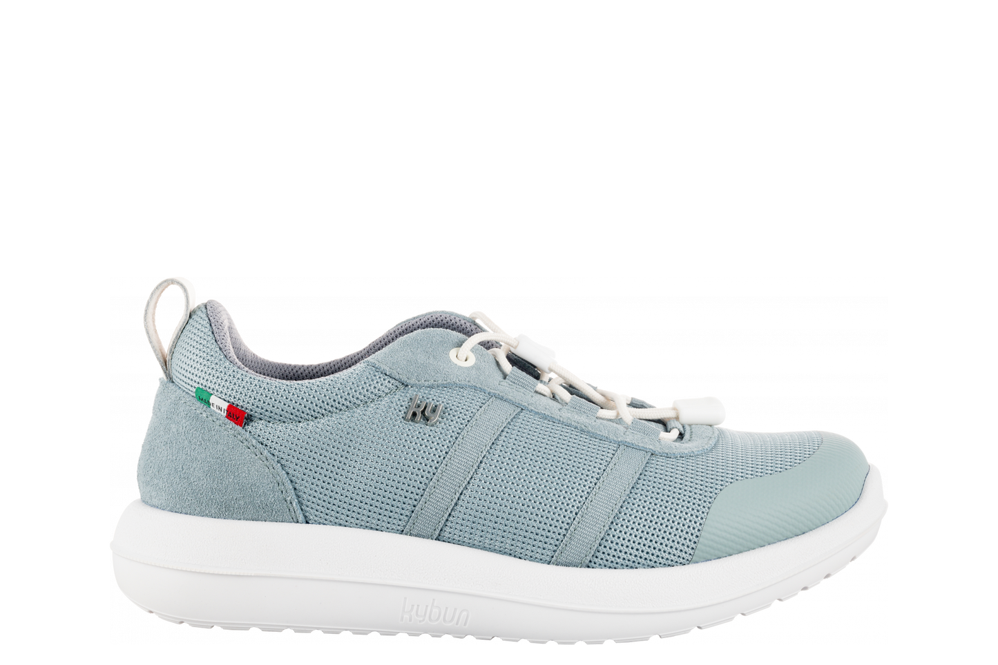 The Langnau Green has a Tropo sole and therefore a lower Rebound-Effect. The Tropo sole (successor of the popular Cirrus sole) has all the advantages of the previous models on the Cirrus sole. This sole has an improved profile for squeaky floors and a «kybun light» feeling with less initial reactions. The Tropo sole is designed to roll better in the backfoot area than the Cirrus sole. Furthermore, it has an ideal fit for almost every foot. This type of sole offers a slightly reduced intensity and effect. With its «kybun-light» feeling, it is ideal for people with weaknesses in the muscular system or balance disorders. Also for all exercise fanatics, who don't want to miss the kybun shoes during sports activities. Perfect for sports such as tennis, volleyball, jogging, etc., where it is less about the winning and more about pain-free movement. The sole has no air cylinder but nevertheless the optimal kybun grip on all floors.
