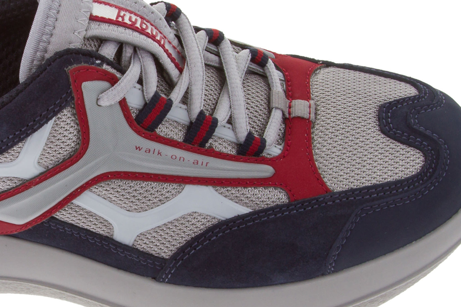 The Sursee 20 Blue-Red model convinces with its sporty look. The red and blue highlights set a fashionable accent and contrast with the otherwise classic shoe in grey. The mesh inserts of Sursee 20 Blue-Red also ensure a high level of air permeability on a warm day a pleasant foot climate. This successor model of Sursee Blue-Red is released on the Strato sole. Discover also other colour variations of the popular Sursee collection.